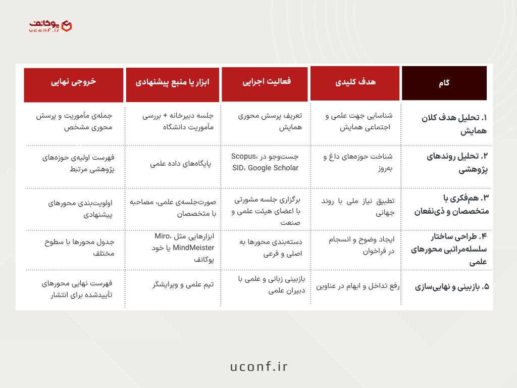 انتخاب هدفمند محورهای علمی در همایشهای دانشگاهی — روش گامبهگام و مثال واقعی